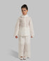 EMBROIDERED TWO-PIECE SET. LONG-SLEEVE BUTTON-UP SHIRT WITH A HIGH RUFFLED COLLAR AND DELICATE EMBROIDERED DETAILS. WIDE LACE-TRIM CUFFS WITH SCALLOPED EDGES ADD A REFINED TOUCH. MATCHING WIDE-LEG TROUSERS WITH SUBTLE ALL-OVER EMBROIDERY AND A SCALLOPED LACE HEM. LIGHTWEIGHT FABRIC WITH A SOFT, ELEGANT SILHOUETTE DESIGNED FOR SPECIAL OCCASIONS AND EFFORTLESS STYLING.